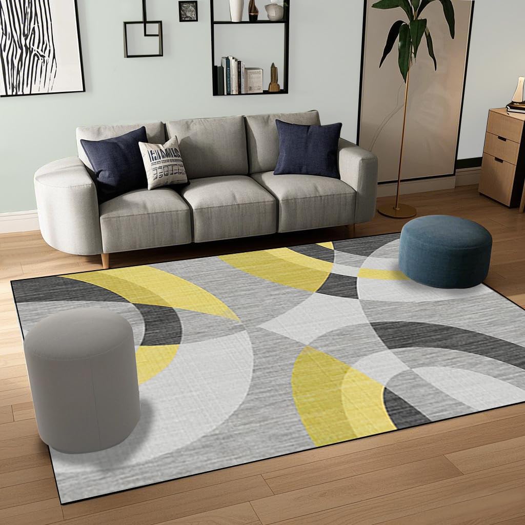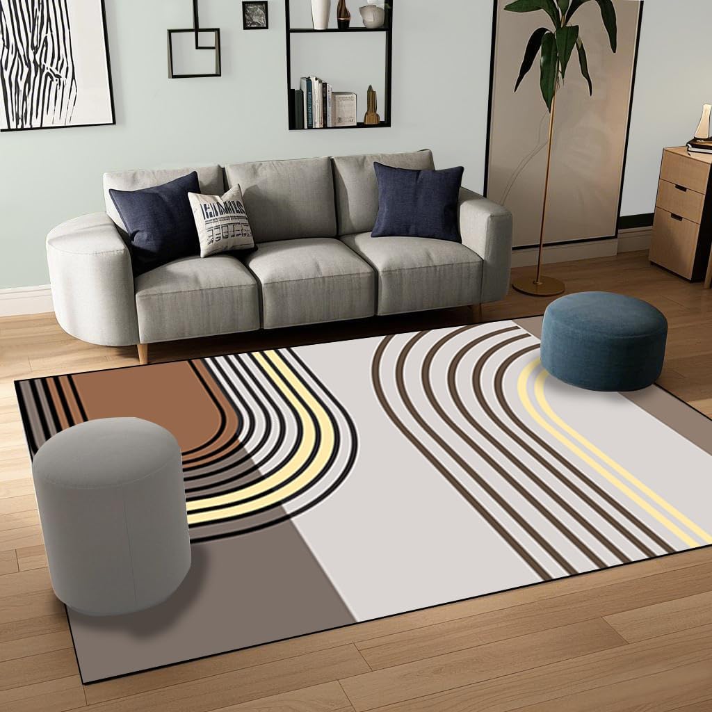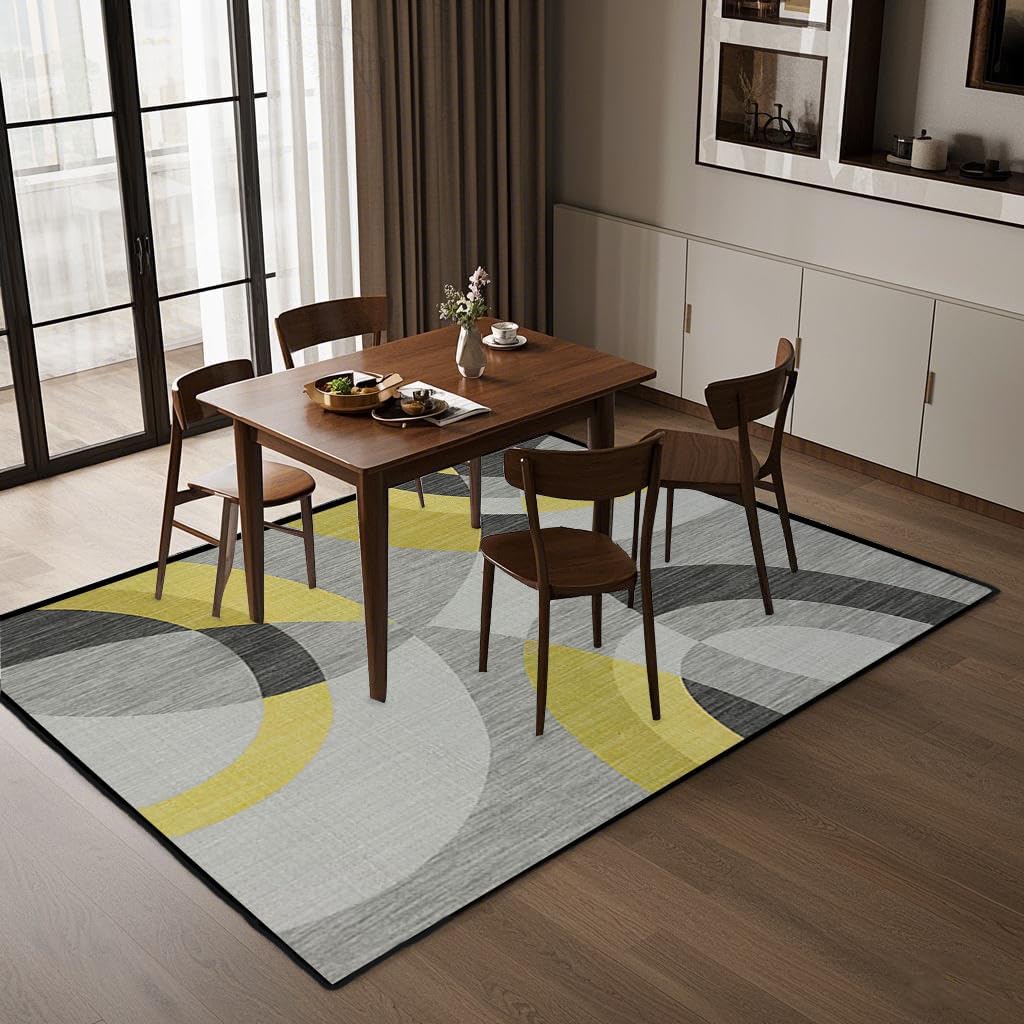 Area Rug Washable 5'x7' Ft Non Slip Rubber Backing Foldable Geometry Durable Rug for Living Room, Bedroom, Home Office