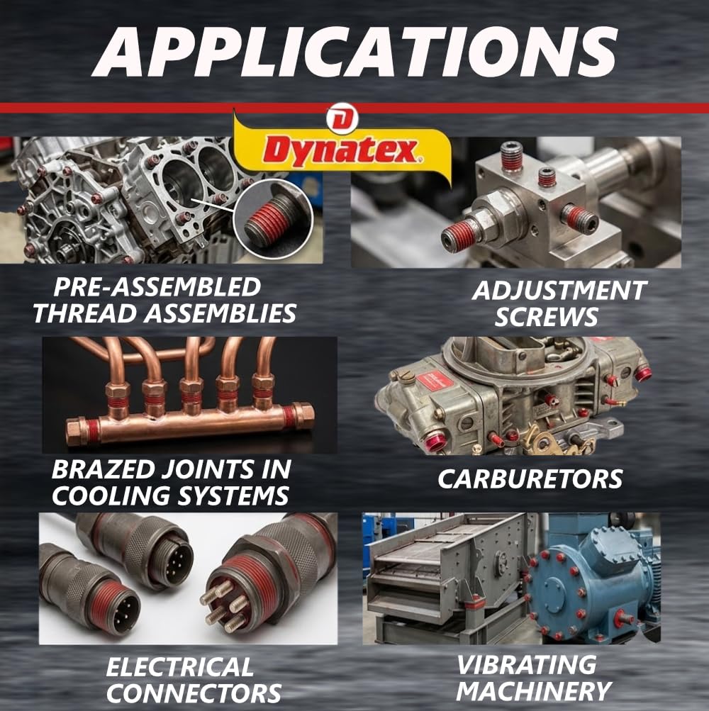 Dynatex Green High Strength Threadlocker is a low viscosity and high capillary action for locking and sealing threaded fasteners and close-fitting parts after assembly, also to penetrate and seal metal porosity in moulds and in castings. Medium to high strength locking, highly resistant to heat, corrosion, vibrations, water, gasses, oils, hydrocarbons, and many chemicals