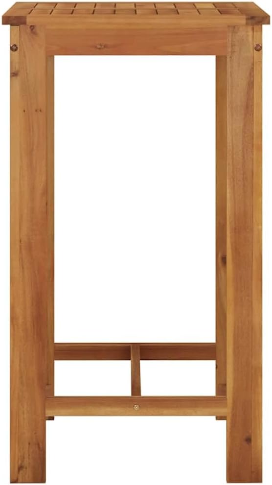 This Garden Bar Table really brightens up your outdoor area, giving you both style and functionality. It’s made from solid acacia wood, with a smooth surface that shows off the wood’s natural grain and colors, making it a warm and inviting spot to gather with friends and family.Natural Aesthetic: The brown tones and smooth finish boost its visual appeal, blending nicely into various outdoor settings.Durable Construction: Made from solid acacia wood means it can handle the elements while giving you a sturdy base for your drinks.Versatile Usage: Perfect for casual picnics or formal outdoor dining, it fits up to four guests comfortably.Weather Resistant: The oiled treatment keeps it safe from moisture, making it great for outdoor use all year round.Easy Assembly: Comes with an assembly manual, and it takes just one person to get it ready with a screwdriver.Color: Brown Shape: SquareMaterial: Solid Acacia woodFinish: Oiled Indoor/Outdoor: Indoor / OutdoorCover Included: NoRoom: Garden and terraceMaximum Number of People: 4Dimensions: 23.6 x 23.6 x 41.3 in (W x L x H)Surface Height: 41.3 inLeg Height: 41.3 inWeight: 27.76 lbsDelivery Contains: Assembly manualAssembly Required: YesRecommended Number of People for Assembly: 1