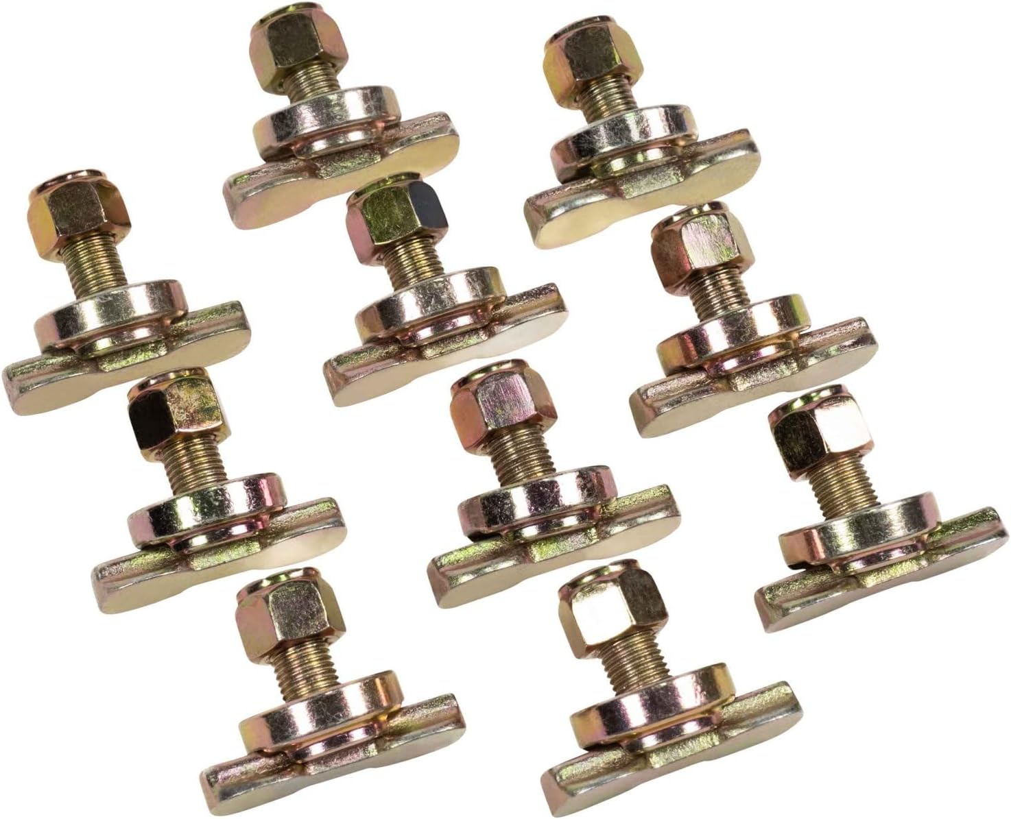 Pack Size: 10 PackL-Track Double Lug Threaded Stud FittingLength: 1-19/32"Width: 1"Working Load Limit: 1,833 lbsBreaking Strength: 5,500 lbsBolt Size: 3/8"Height: 1.15"Material: Made of Carbon SteelThe Double Stud Attaches to 2 of the L-Track Slot for Added Strength. Our both kit provides you with a heavy duty anchor point at 1,833lbs of Working Load Limit Strength. This kit is compatible with all our Mytee Products L-Tracks.
