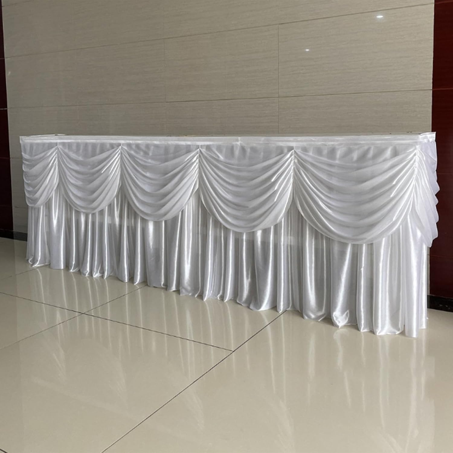 Transform any ordinary table into a stunning focal point with this elegant table skirt crafted from premium satin fabric. The soft sheen and graceful drape bring an upscale look to your event décor, making it ideal for both casual and formal occasions. Whether you're hosting an intimate celebration or a grand banquet, this table skirt adds just the right touch of charm and sophistication.Designed for versatility, it coordinates effortlessly with a variety of color schemes and themes, allowing you to create a cohesive and inviting table presentation. The tailored silhouette gives your display a polished appearance while discreetly hiding unsightly table legs or storage underneath. It's not just a decorative accent—it's a practical solution for enhancing your setup.This table skirt also makes a wonderful choice for decorators looking to elevate the visual appeal of dessert tables, gift tables, buffet stations, or head tables at weddings. Durable and reusable, it offers lasting value and can be stored and used again for your next big event. Product SpecificationsProduct Name: Ice Silk Table SkirtMaterial: SatinColors: 14 ColorsDimensions: 10ft ( 118 x 29.5in), 20ft ( 236 x 29.5in)