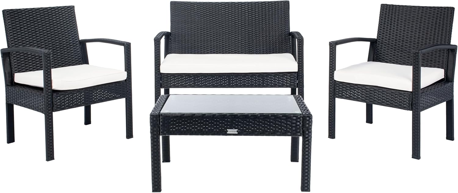 Designed to bring a tropical resort vibe to your porch or patio, the Bassey Living Set is extravagant staycation outdoor decor. Bassey complements any taste or style with its woven natural frames and white cushions. Its glass topped coffee table is ideal for holding candles, drinks, or canapes as you relax the day away.
